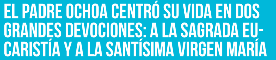 El Padre Ochoa tenía una grande devoción y amor al Santísimo Sacramento. El Santísmo Sacramento era fortaleza en su ejercicio sacerdotal. Expresaba con frecuencia: que el centro de tu apostolado sea el llevar a tus alumnos, a tus fieles, al altar y a los sacramentos.